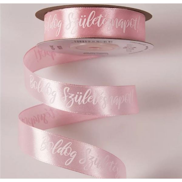 Prémium "Boldog Születésnapot!" dekorációs szalag - Rózsaszín szatén (20mm x 20m)